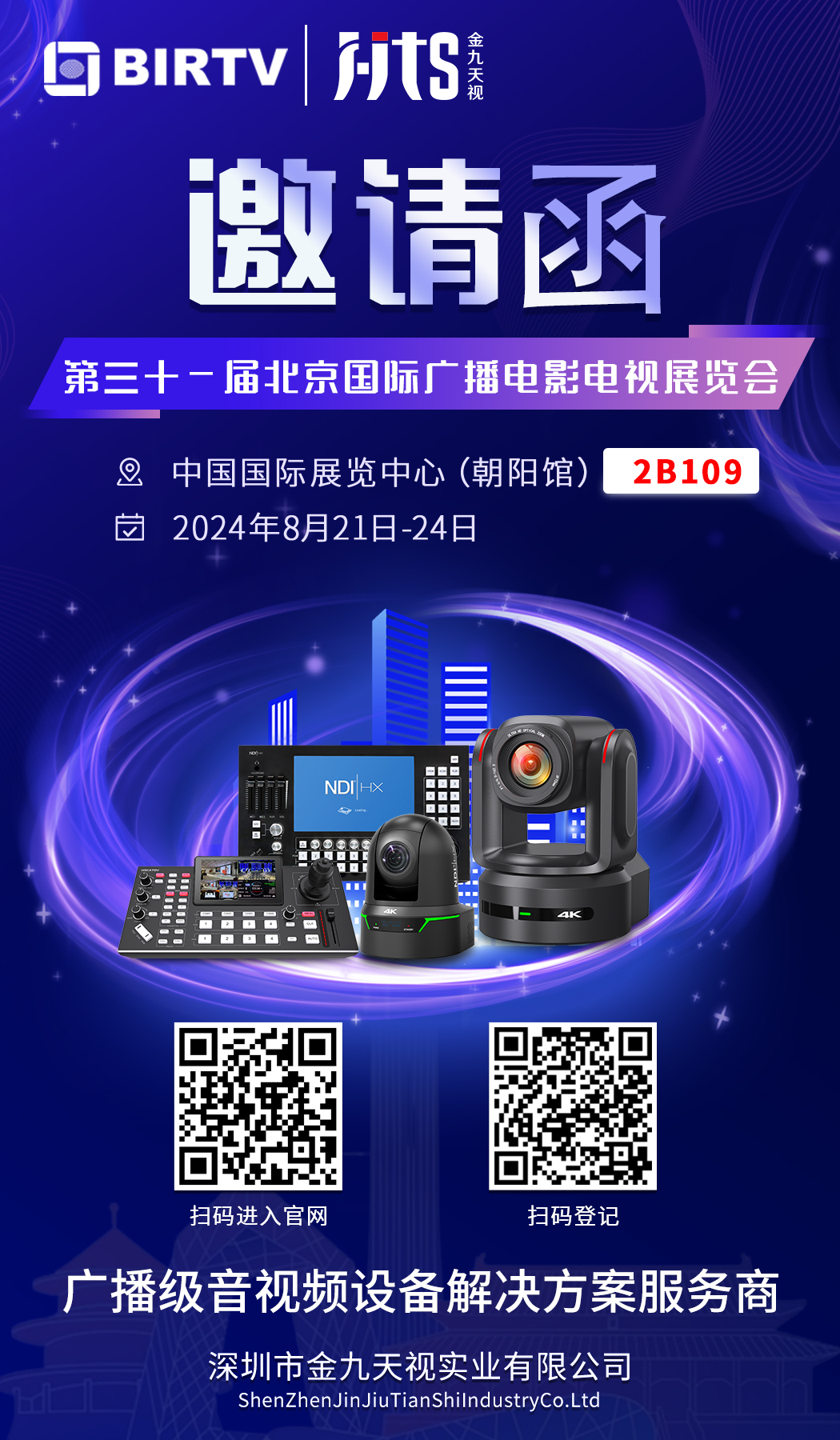 金九天視成立于2004年,深耕音視頻解決方案領域已逾二十年,是專業的音視頻方案提供商。2024年8月21日至24日,金九天視將攜最新產品和解決方案,在北京中國國際展覽中心(朝陽館)2B109展位,展示我們在視聽領域解決方案上的最新成果。金九天視誠邀全球合作伙伴、行業專家及用戶朋友蒞臨展位,一同體驗金九天視打造的視聽盛宴,共同開啟音視頻技術的新紀元!