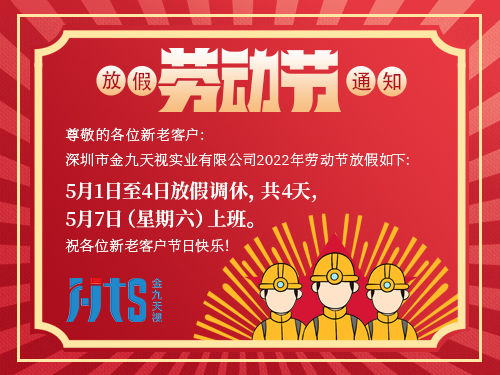 【深圳金九天視實業(yè)有限公司】2022年五一勞動節(jié)放假通知!