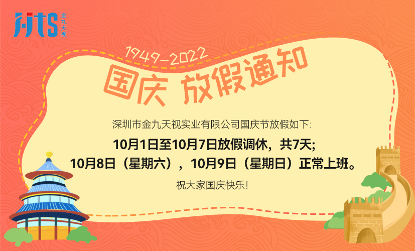 深圳市金九天視實業(yè)有限公司2022年國慶節(jié)放假通知